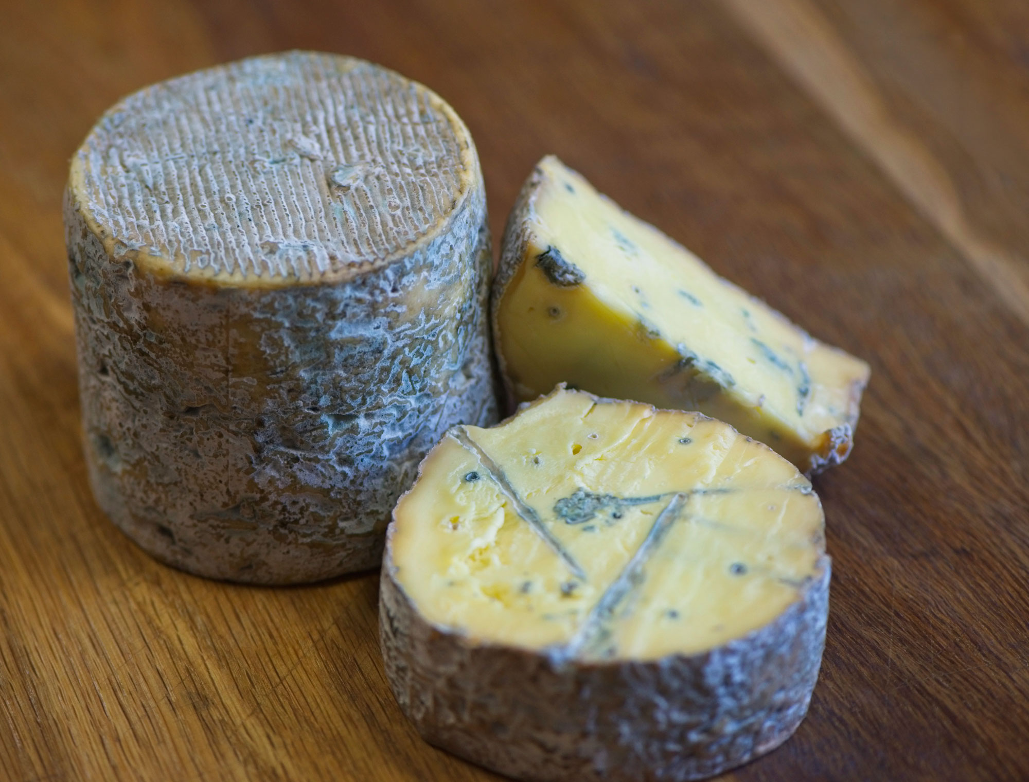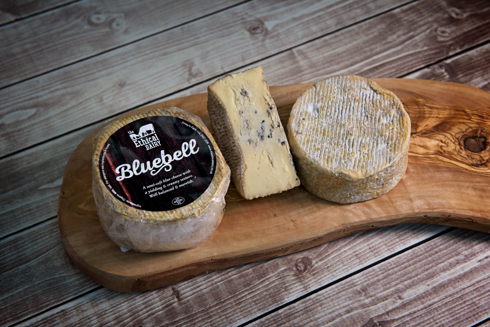 Bluebell is made in small truckles and is dark cream or light beige in colour with light blue or grey veins and a natural rind that is grey in colour. Bluebell is a well balanced and moreish cheese; it's a gentle blue that will suit a wide range of palates.