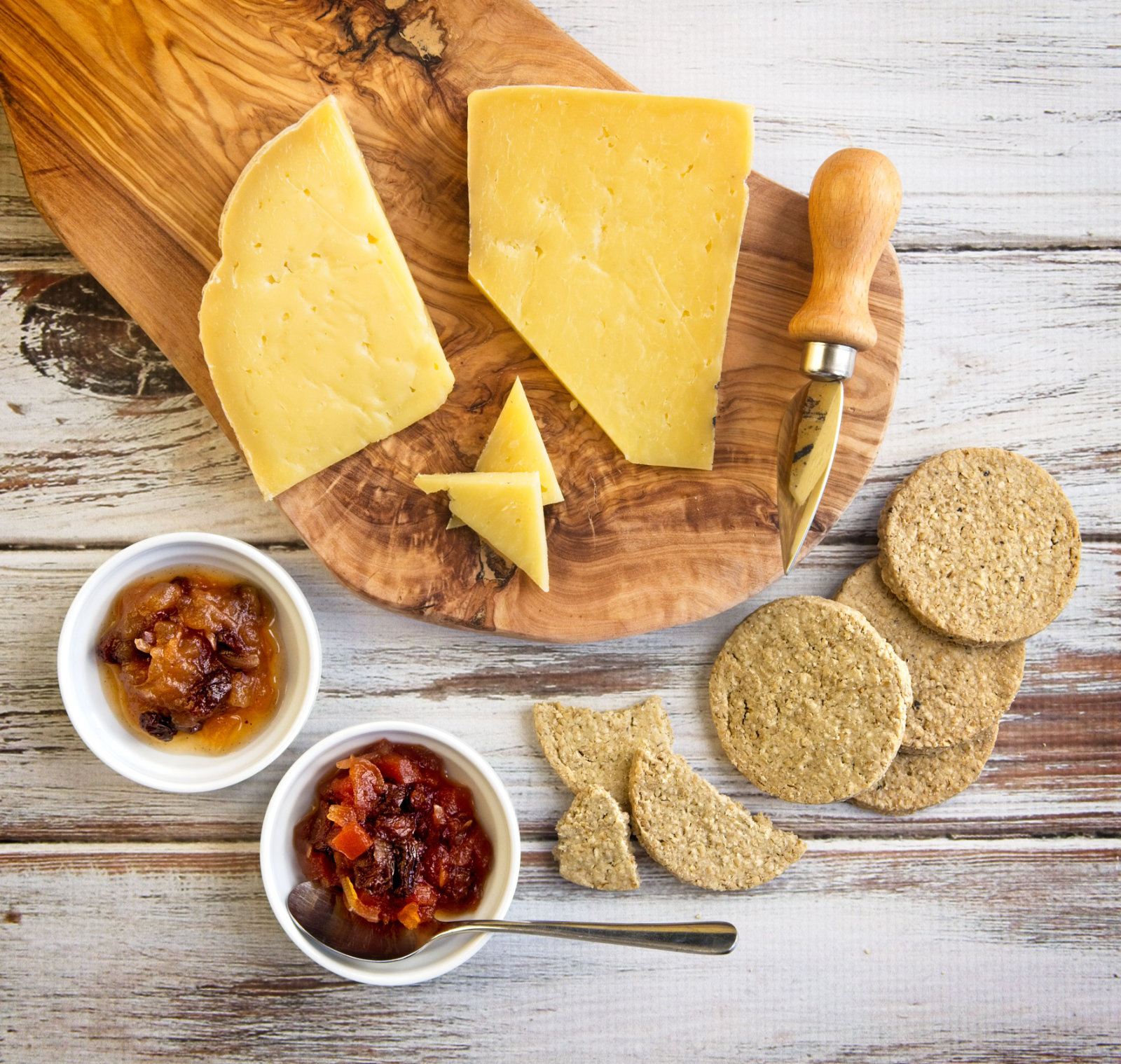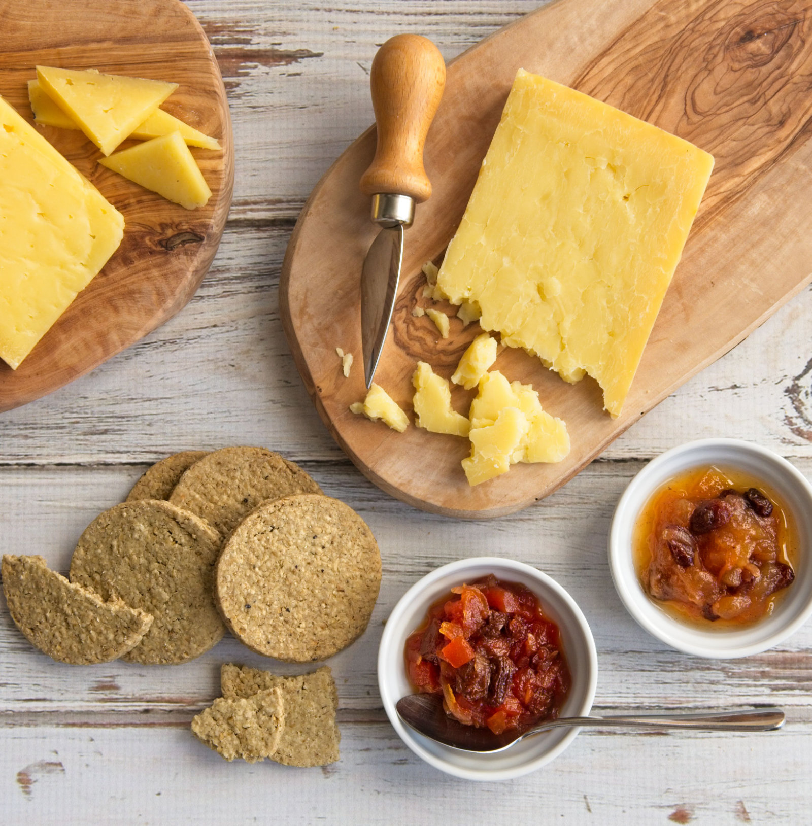 Poacher’s Pickle is our absolute favourite chutney and it goes perfectly with our cheeses. It’s a tomato and apple based chutney, made slowly to a traditional recipe in small batches, which creates a beautiful depth of flavour. Bramley Apple Chutney is a slow cooked apple and cider chutney, and the tasty artisan oatcakes are made by a local bakery, just down the road from us.